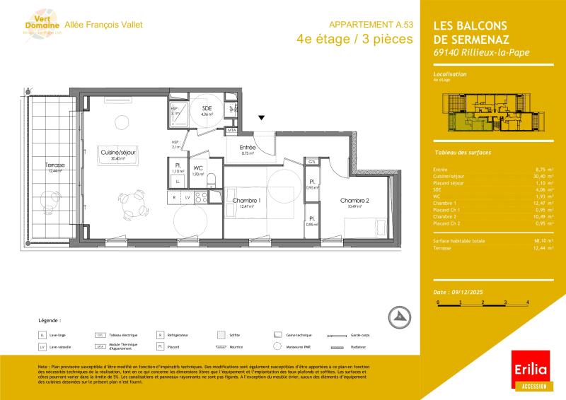 Cet appartement orienté Sud-Est bénéficie d'une terrasse de 12,44 m2 et d'une cave de 4,79 m2.