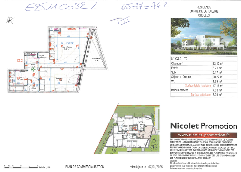 Contact uniquement par téléphone en communiquant la référence logement E2511C032L: 06 21 44 38 99