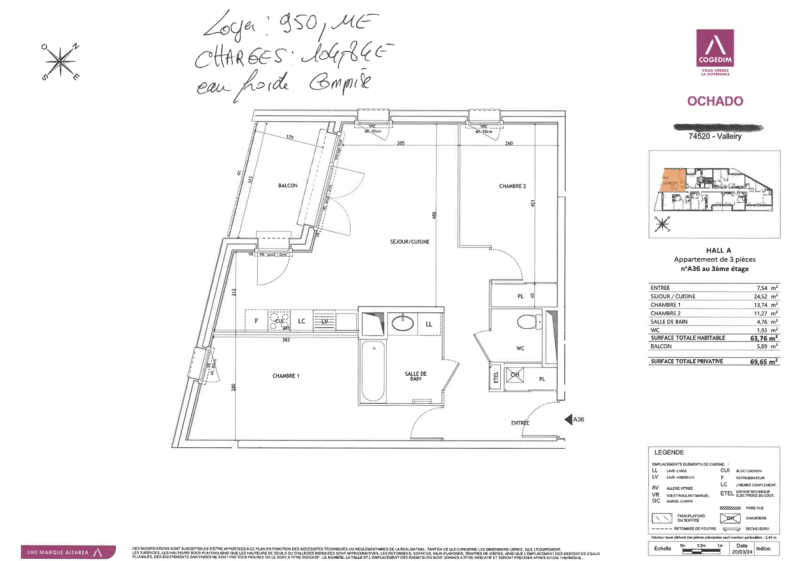 D’une surface habitable de 63,76 m², complétée par un balcon de 5,89 m², ce logement offre des volumes confortables et un agencement optimisé. Il se compose d’un séjour avec espace cuisine, de deux chambres, ainsi que d’un balcon permettant de profiter d’un espace extérieur agréable.