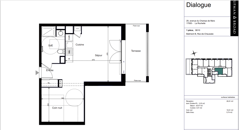 À deux pas de la vieille ville, dans une résidence neuve, nous vous proposons un appartement sans frais d’agence et sans garant exigé.
