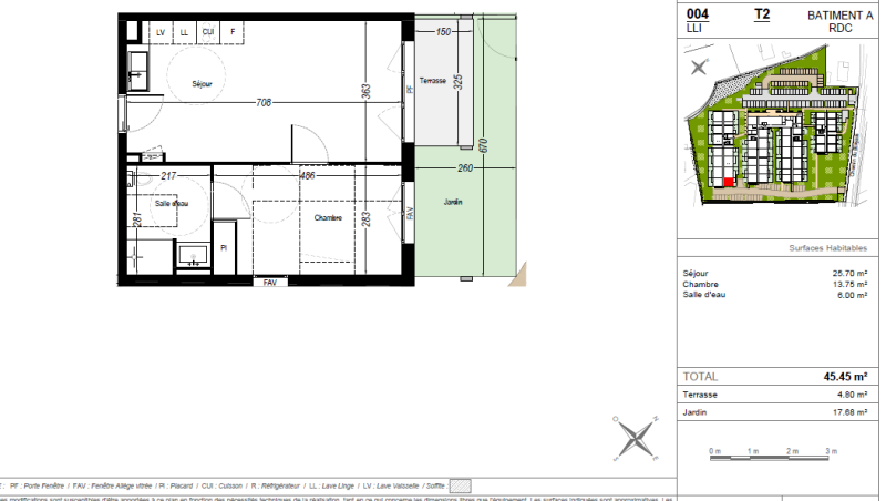 Il se compose d’une spacieuse chambre de 13 m², ainsi que d’un séjour lumineux ouvrant sur un jardin privatif de 21 m².