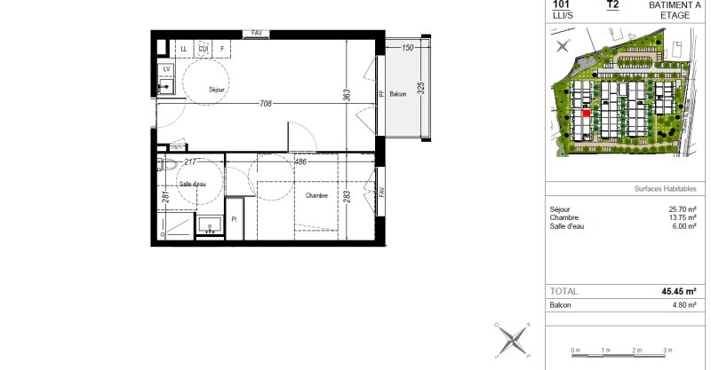 Nous vous proposons à la location un agréable appartement T2 de 45 m² au 1er étage avec ascenseur, au sein d’une résidence intergénérationnelle neuve, moderne et sécurisée.