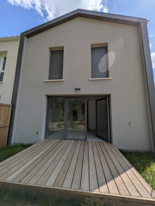 Sans frais d'agence, ni garant, nous vous proposons à la location une maison duplex neuve de type 4 d'une superficie de 93m2 (3 chambres) avec deux places de stationnement en surface au sein d'un lotissement neuf sur la commune de Léognan.
