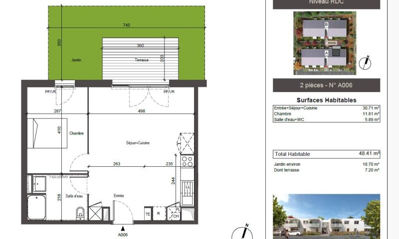 Sans frais d'agence ni garant, nous vous proposons à la location un appartement neuf de type 2 d'une