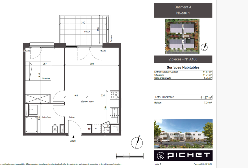 Sans frais d'agence ni garant, nous vous proposons à la location un appartement de type 2 d'une superficie de 42 m2 au sein d'une résidence neuve avec une place de stationnement en surface.
