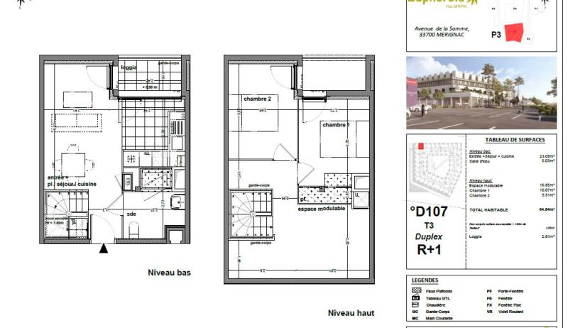 Nous vous proposons à la location un appartement de type 3 duplex d'une superficie de 65m2 avec loggia et une place de stationnement en sous-sol au sein d'une résidence neuve.