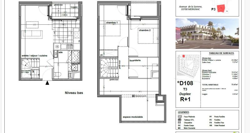 Sans frais d'agence, ni garant T3 duplex neuf à Mérignac soleil