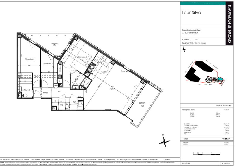 Sans frais d'agence ni garant, nous vous proposons à la location un appartement de type 4 d'une superficie de 90 M2 au sein d'une résidence neuve;